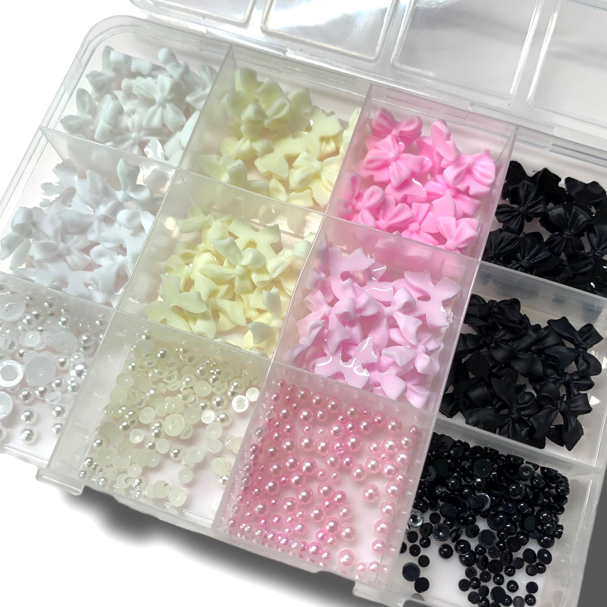 12 slots of coquette-style charms — perfect for adding a soft, feminine touch to any nail design.