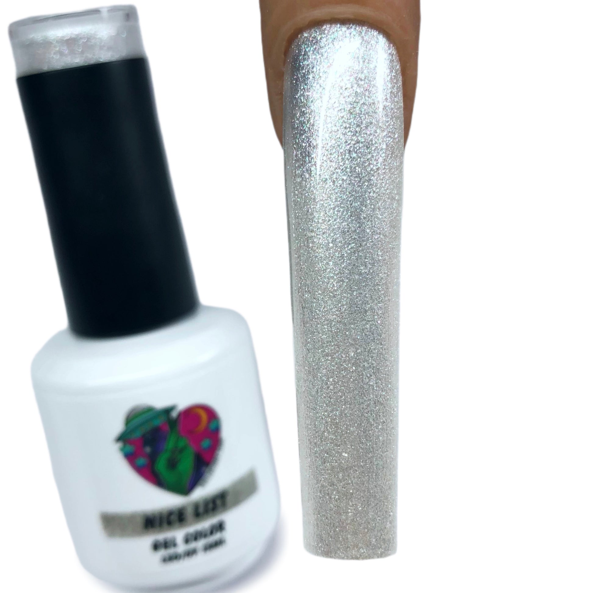 A snowy white glitter with silver shimmer undertones!