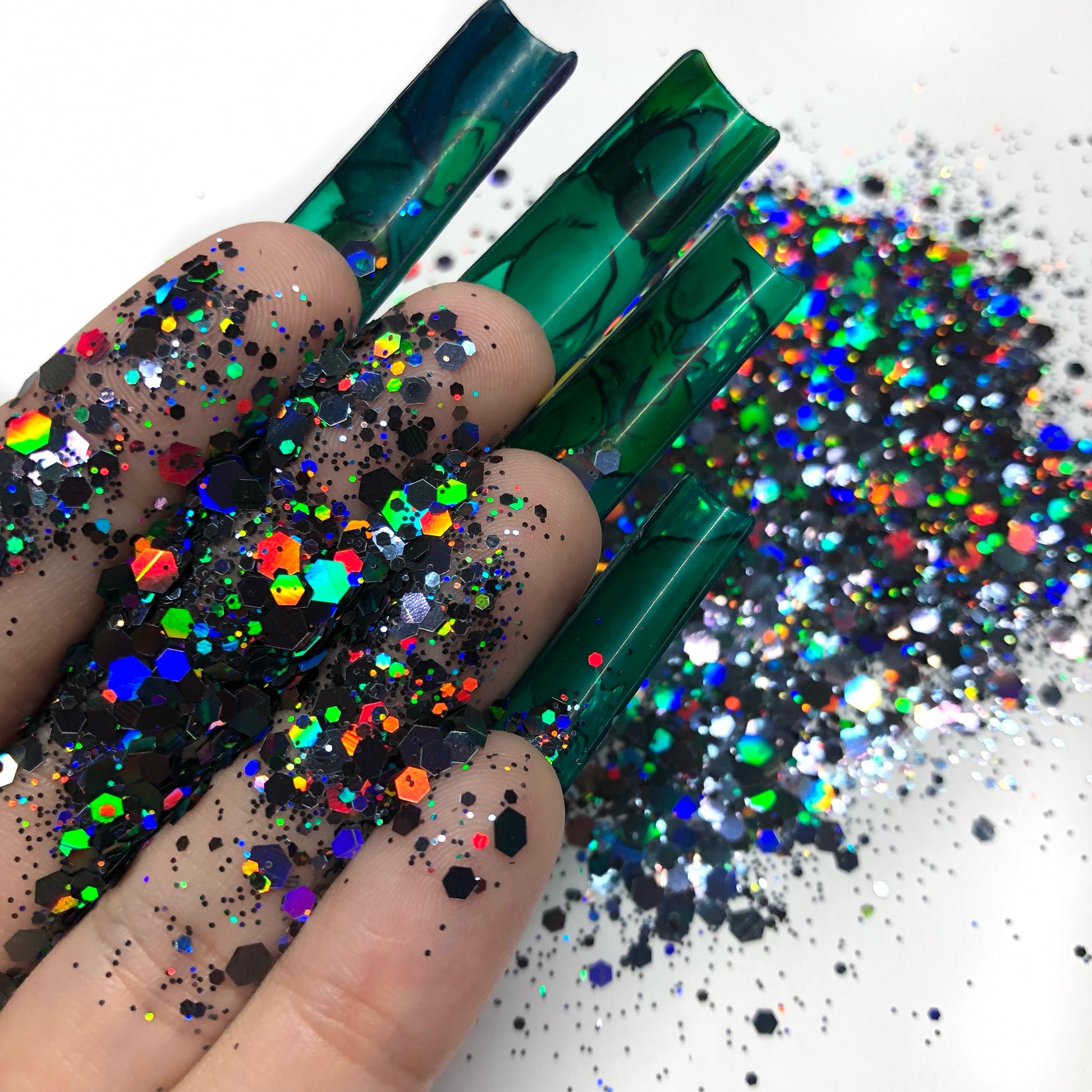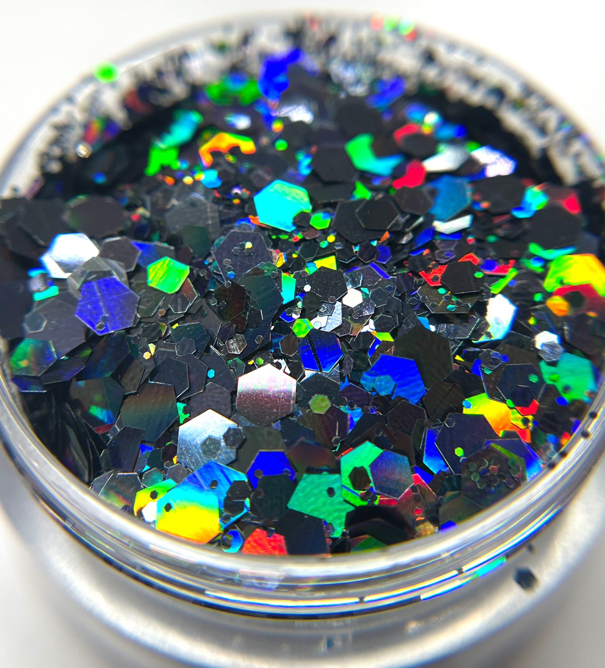 8g of ultra-fine holographic glitter — a deep midnight black for bold, dramatic nail art.