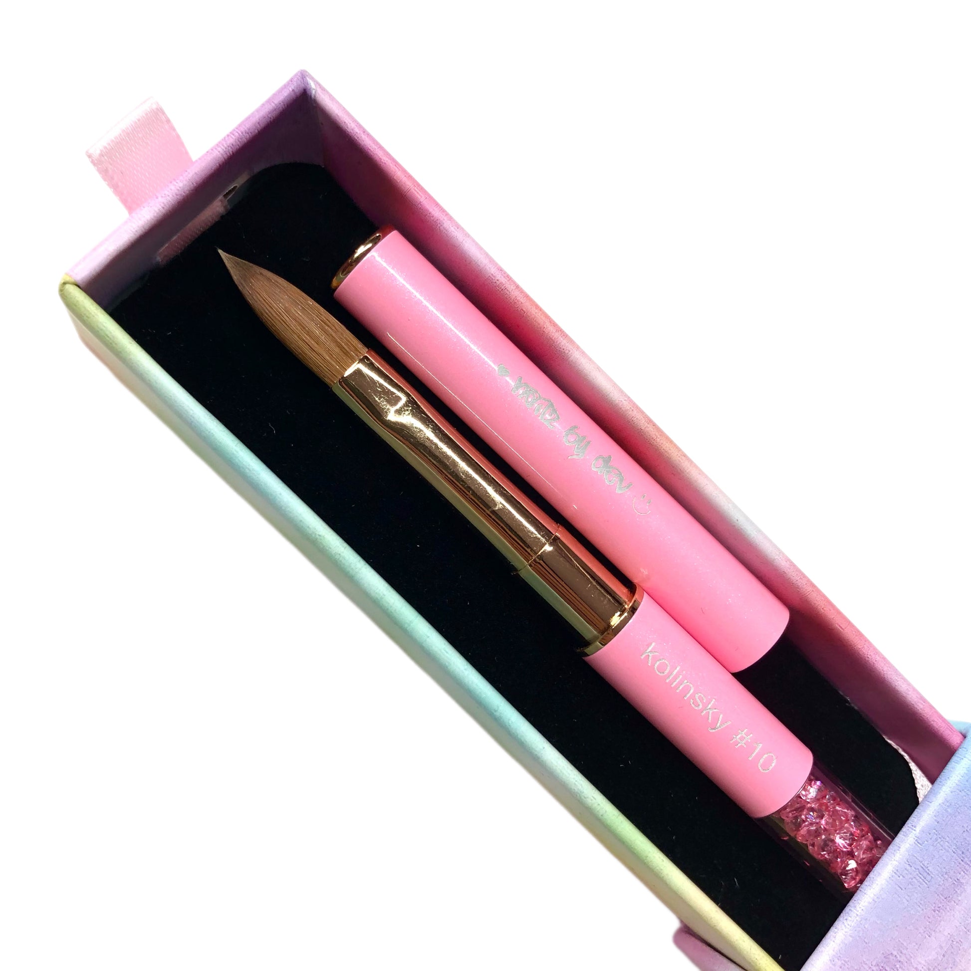 Kolinsky Acrylic Brush is a beautiful pink crystal-handled Kolinsky brush — now available in three sizes (10, 12 & 14) so you can choose your perfect fit. Each brush comes pre-pinched for ideal control and precision.