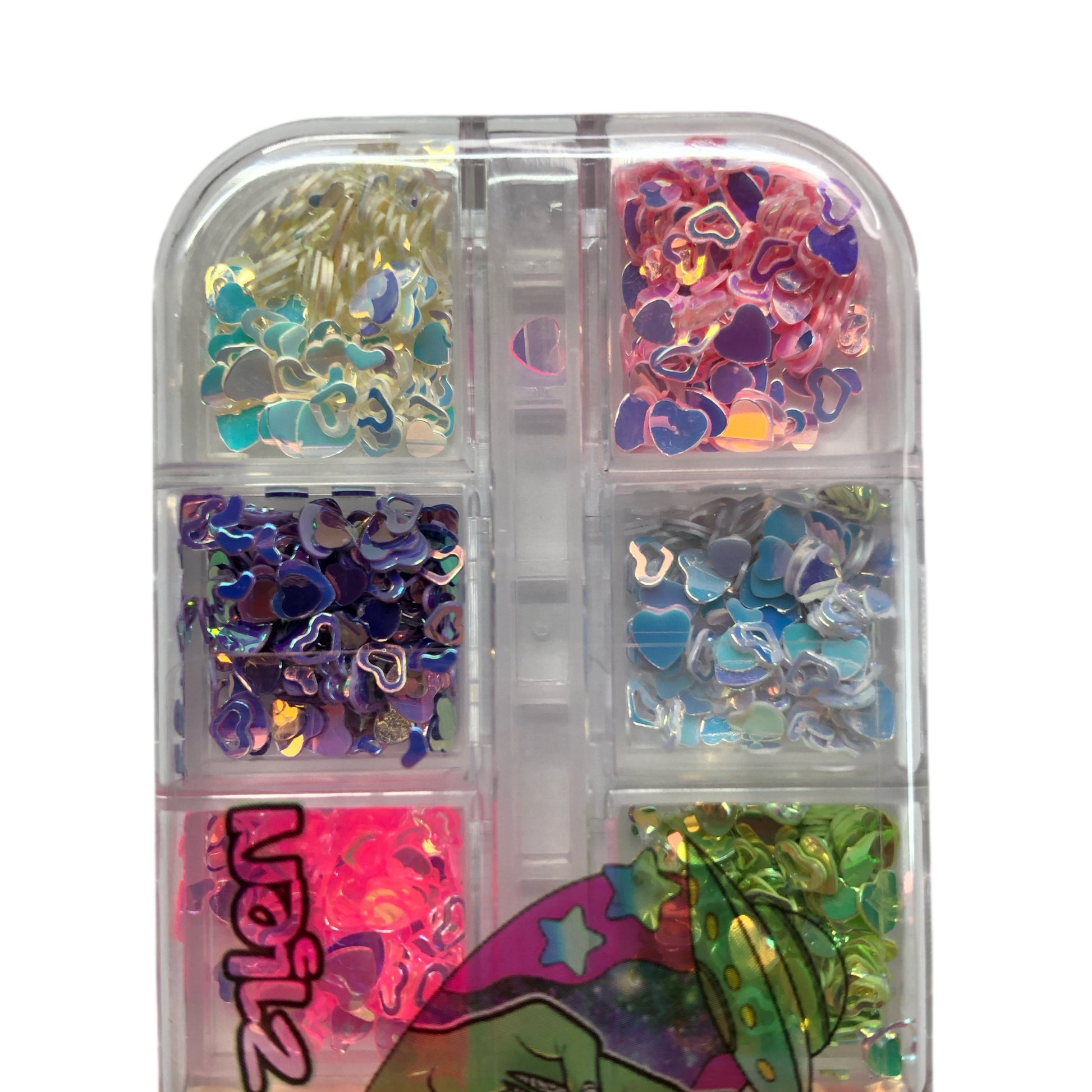 12 slots of heart-shaped sequins — perfect for encapsulating, and ideal for aquarium nails thanks to their lightweight, floating design.